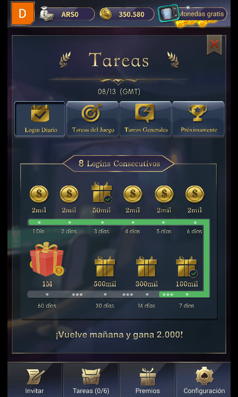 1#Entra al login todos los dias durante un mes y llegaras mas rapido al millon.
